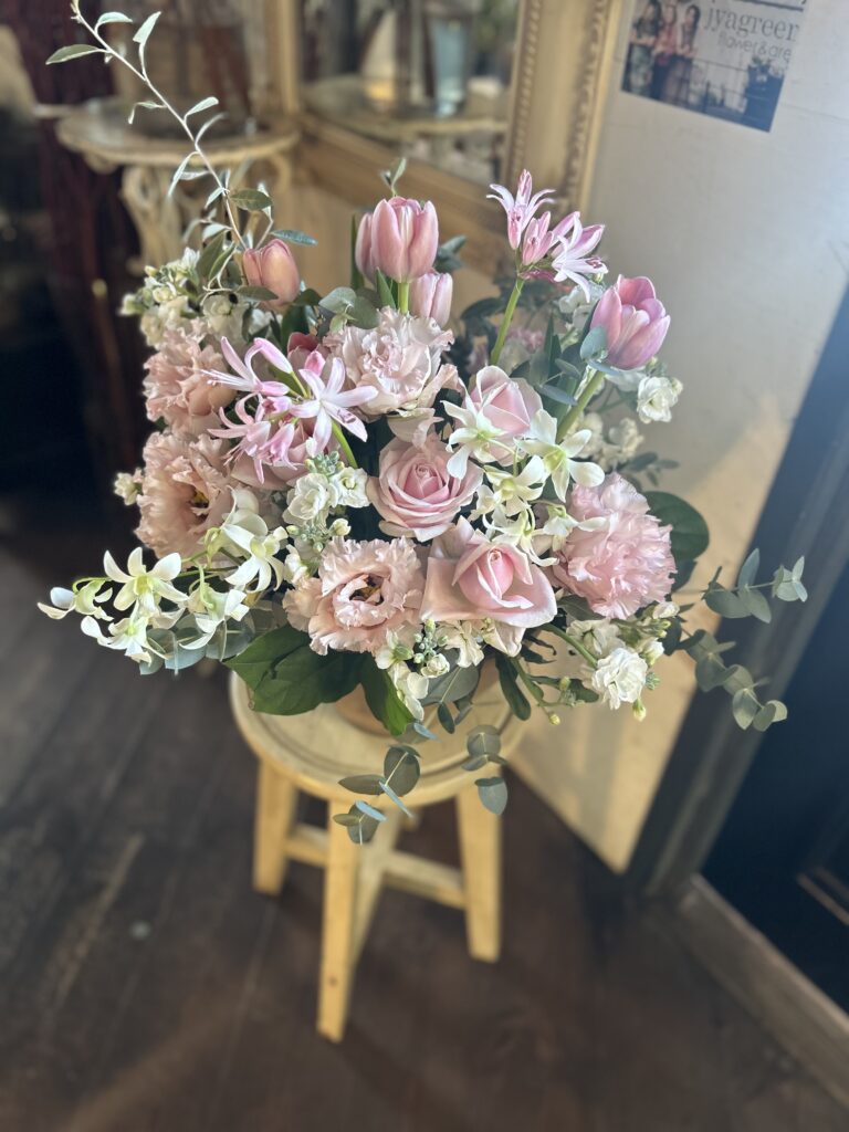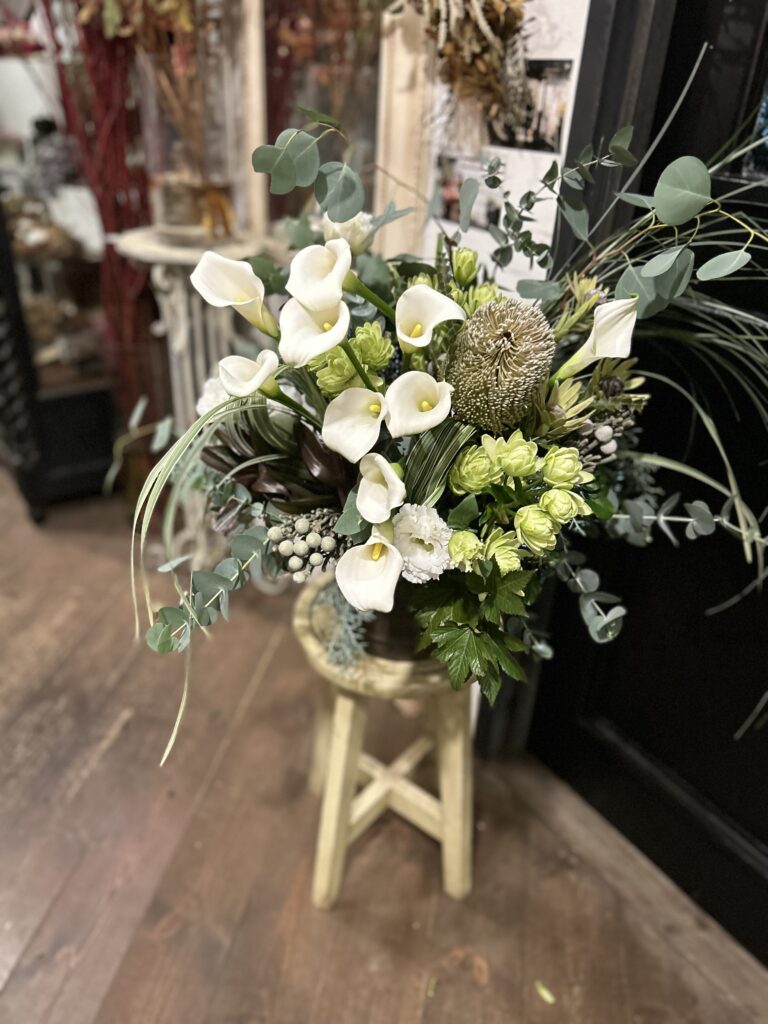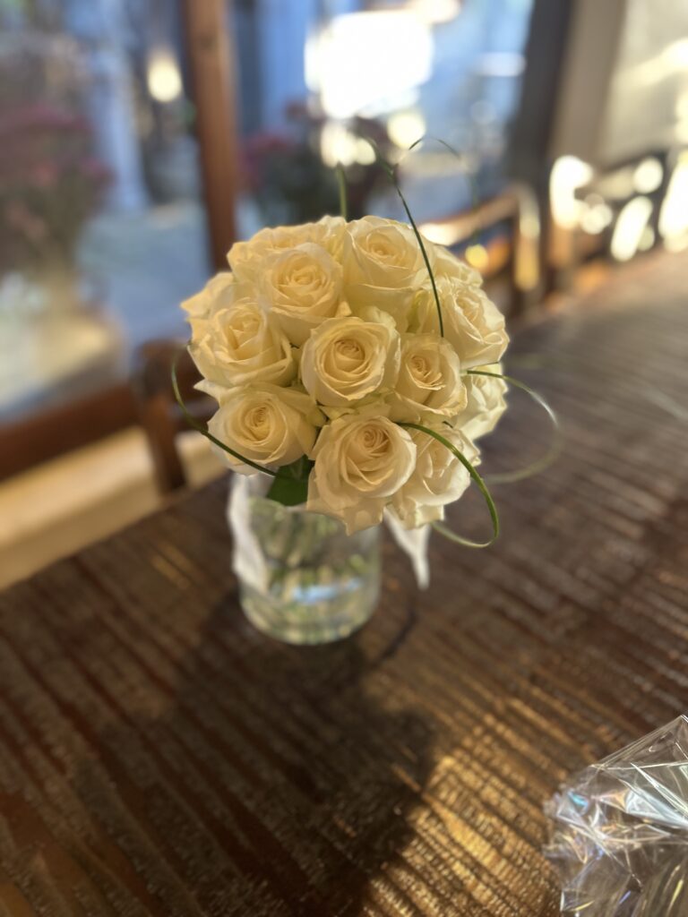 贅沢に白のカラーをたくさん使って。お誕生日祝い。