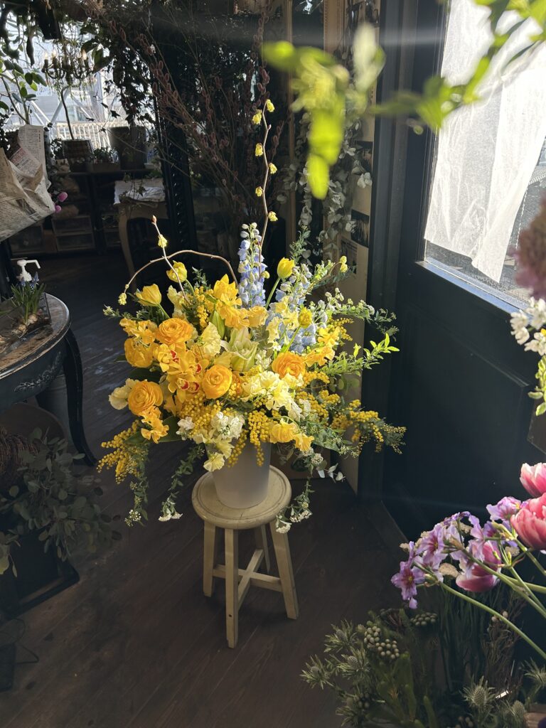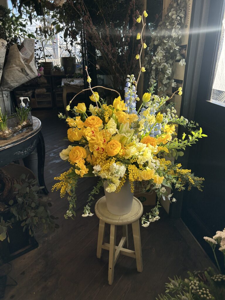 ミモザの綺麗な季節なので最近よくミモザをアレンジにいれてますね。