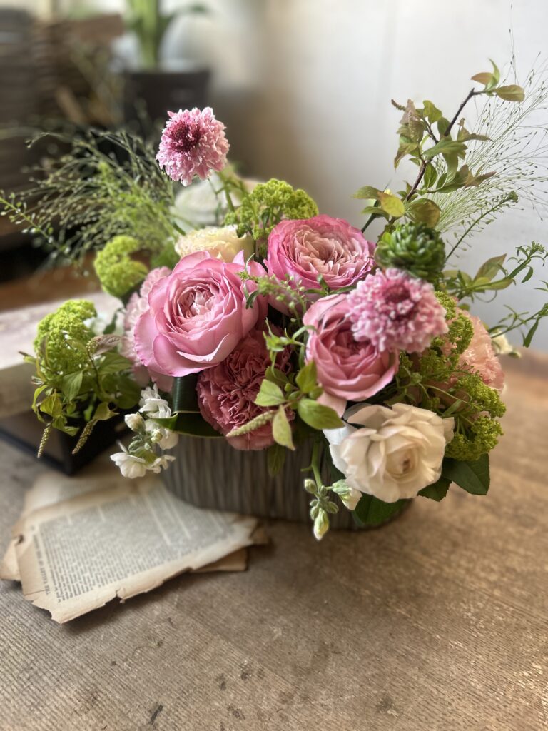 アレンジメントは¥4000〜、花束はご予算に合わせてお作りします。